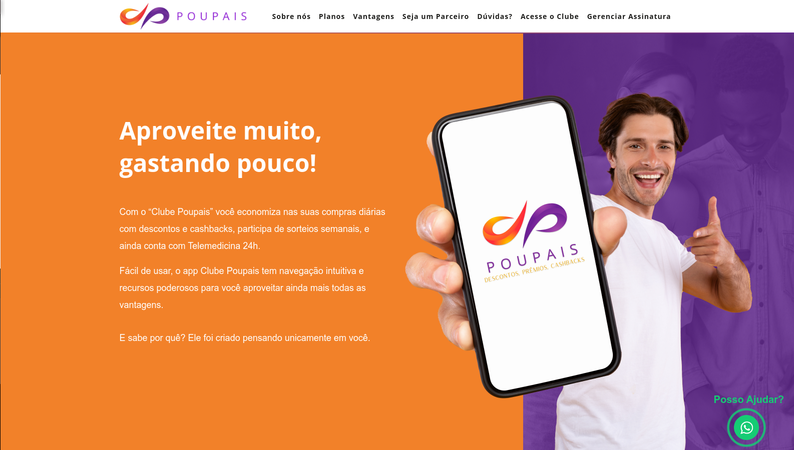 OnePage customizada para o Clube de Benefícios da Poupais.